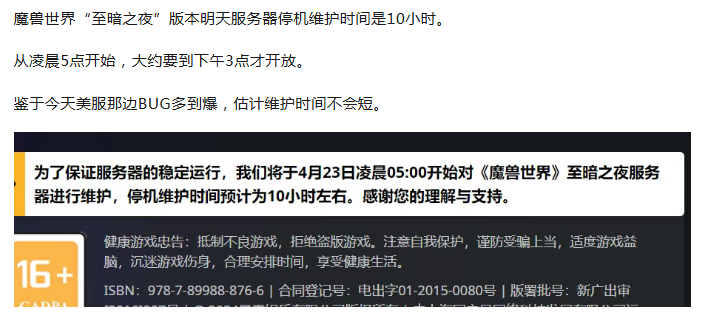 魔兽世界:明日服务器维护时间10小时