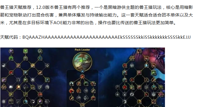 而兽王猎则是排在了A+,并且还是A+靠前的位置,恶魔术则是排在了S级,所以本期就着重和大家说说兽王猎和痛苦术的天赋和属性推荐。开始之前要和大家说一下12.0前夕版本开始之后最高是80级,还没开放90级,所以到时候的天赋点数,通用天赋会少3点,英雄天赋同样也是少3点,专精则是少4点,注意这是所有职业都一样,一直到开了90级之后才能拿满。