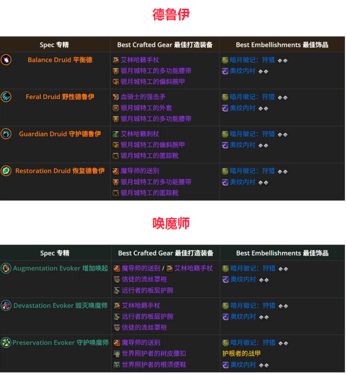 《至暗之夜》第1赛季全职业制作装备及美化词条推荐!