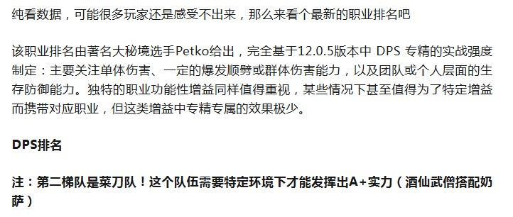 魔兽:12.0.5最新职业排名!多个职业吃到版本红利!顶层职业未变!