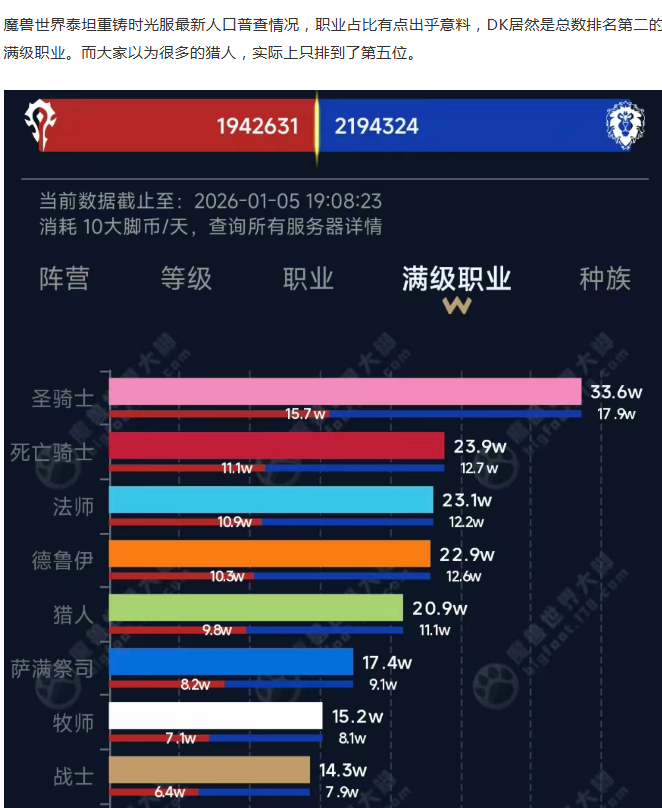 魔兽时光服:职业人口排名出乎意料