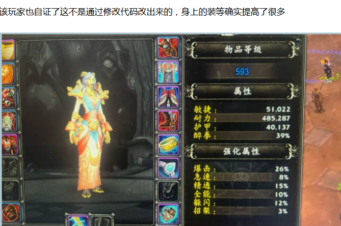 原本以为只是该玩家通过修改游戏代码展示出来是761装等,但是该玩家上线下线之后装等依然是761没变化,而且在wowhead等数据网站查出来这件装备确实是761装等