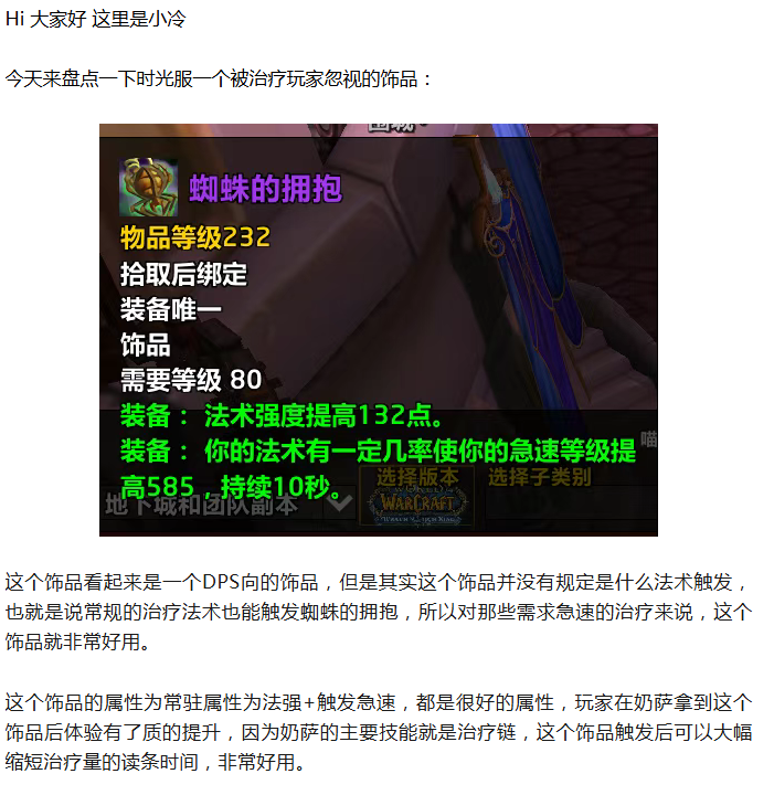 【魔兽世界】时光服最被低估的饰品!DPS不好用,但是是治疗的神级饰品