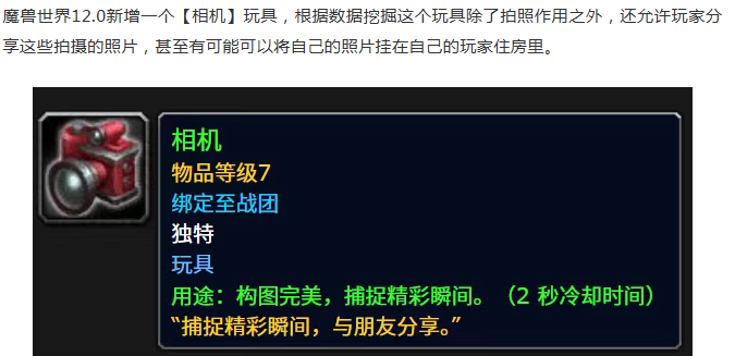 魔兽世界新增自拍相机,玩家可以分享照片甚至将照片挂在房里