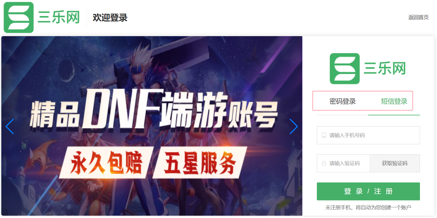 1、打开三乐网地址:https://sanlewang.com,点击头部菜单登录或者点击右边下方登陆,进入登录页面