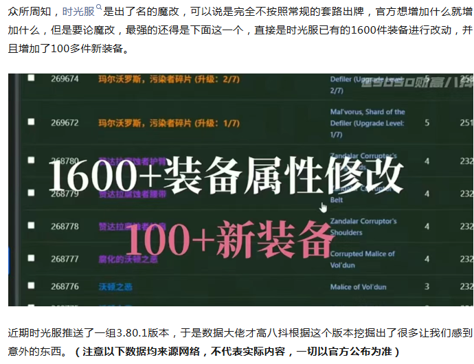 魔兽世界:暴雪最强魔改,连夜调整时光服1600件装备属性