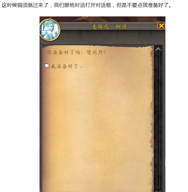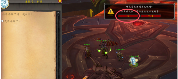 铜须又会跑过来啦,同样我们点开铜须对话框和离开副本的对话框。但是这次顺序不一样了!这次先点击【是】,但是这次我们不会被传出去。