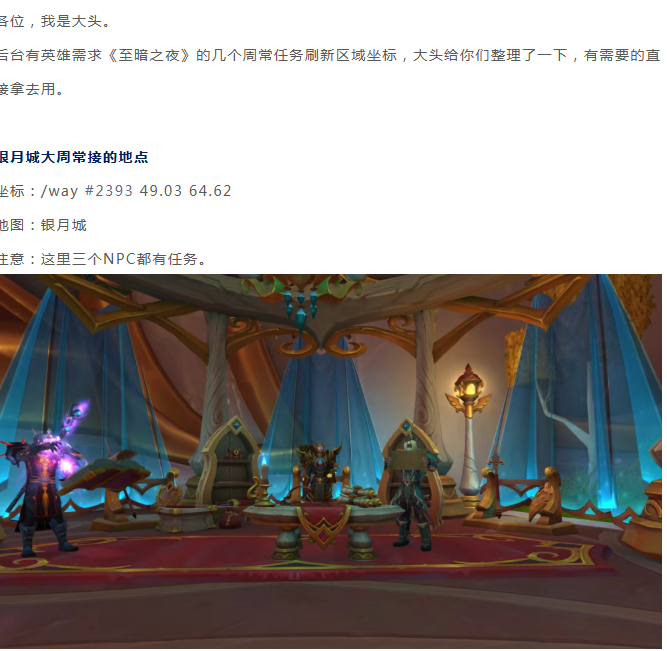 魔兽世界:大头整理《至暗之夜》周常任务区域坐标,拿去不谢