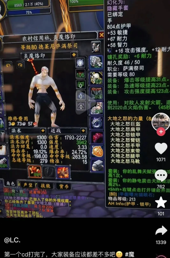 魔兽世界泰坦重铸时光服这位玩家可太牛了,才第一个CD就拿到了8T1+橙锤+埃古雷亚指环,这身装备直接毕业了。