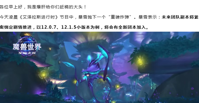 魔兽世界:文艺复兴!暴雪重启“故事到,团本开”更新模式,12.0.7和12.1.5会有新团本!