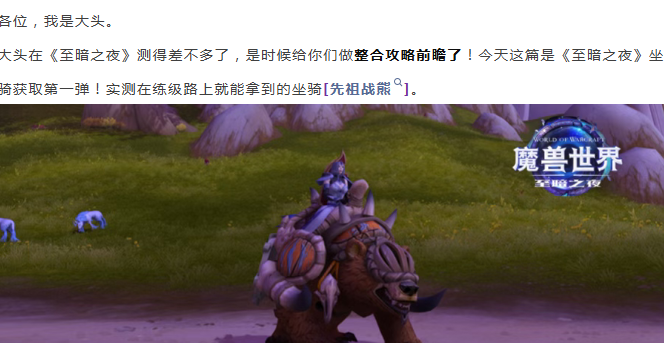 魔兽世界:《至暗之夜》坐骑获取第一弹,实测练级顺路拿的坐骑“先祖战熊”前瞻
