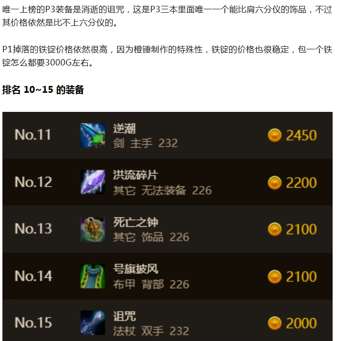 【魔兽世界】时光服P3团本物价排行!凤凰仅排第二,排名第一的道具令人意外