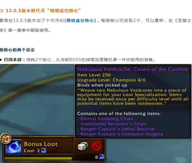 魔兽世界:12.0.5版本新机制解析,装备“保底机制”加入游戏,武器/饰品最高装等298