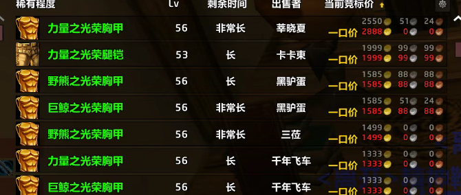 因为其独特的造型受到了很多幻化党的喜爱,所以售价非常高,大家在打60级左右的副本或者怪的时候都会掉落光荣套,如果是腿和胸部位都是价值上千金的,大家如果刷到了千万别直接卖店哦~