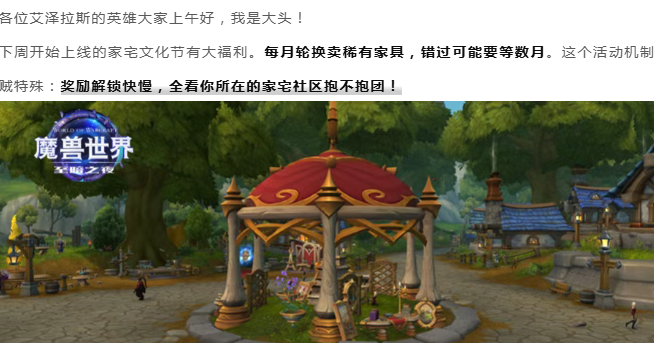 魔兽世界:家宅文化节下周上线!每月换限定家具,抱团>单干,错过要等数月