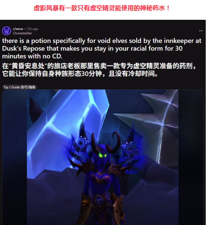 虚空精灵专属福利!夜之拥抱药水,30分钟紫色虚空外观!