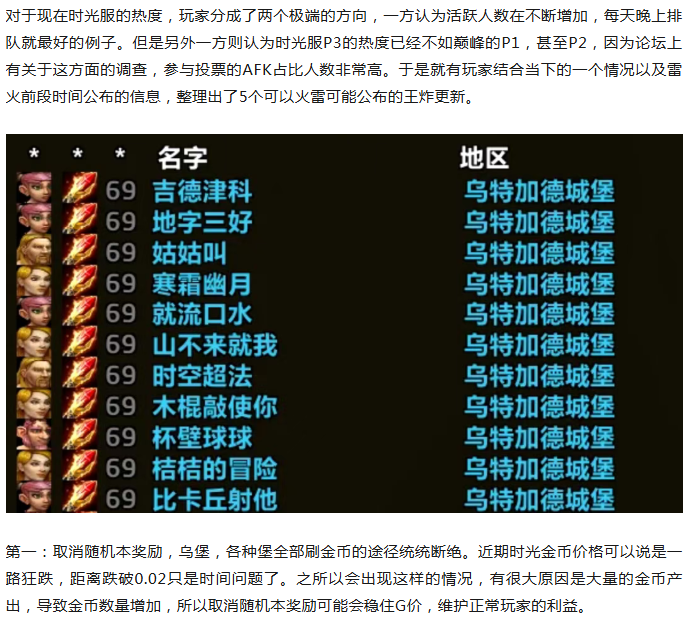 魔兽世界:雷火重磅调整,时光服5个王炸更新