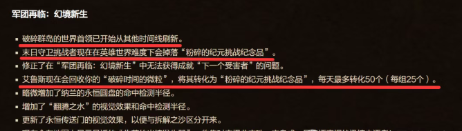 3、现在可以将破碎的微粒转换为挑战纪念品了,但是每周有上限