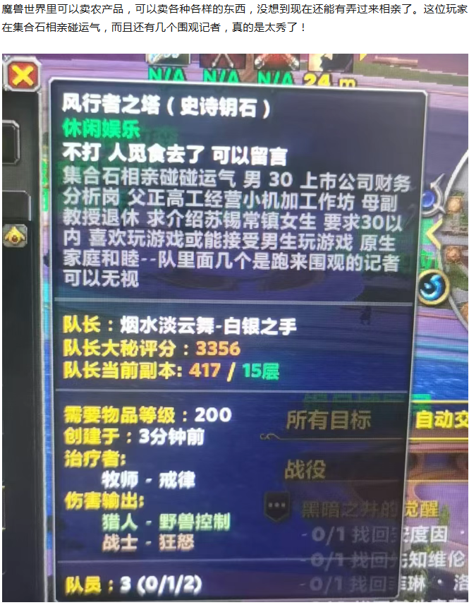 魔兽玩家在集合石相亲,真的有点秀了