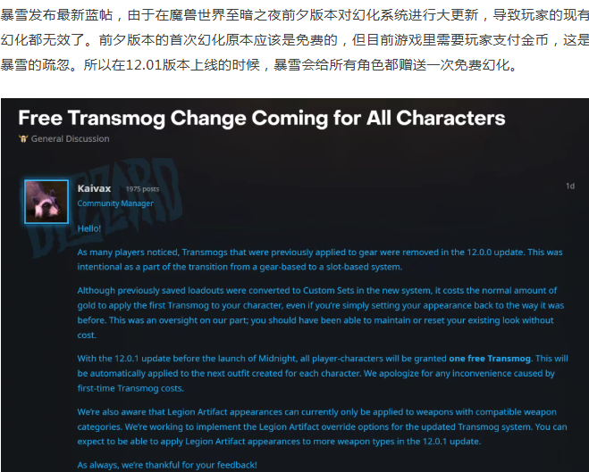 魔兽世界:暴雪疏忽导致出错,将给所有玩家补偿免费幻化!