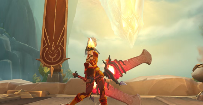 使用 5个荣耀印记,你就能直接兑换到这把炫酷的双手剑——狱花巨剑!