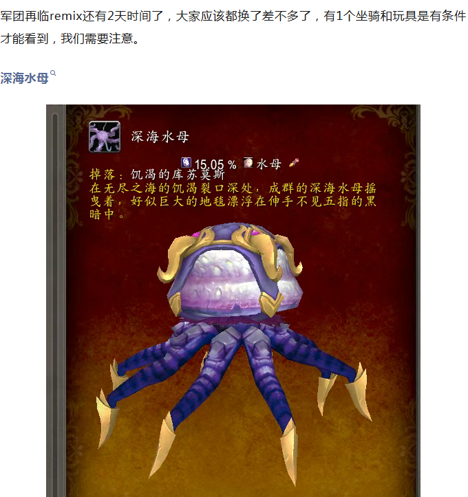 魔兽世界remix这个坐骑和玩具有条件才能看到