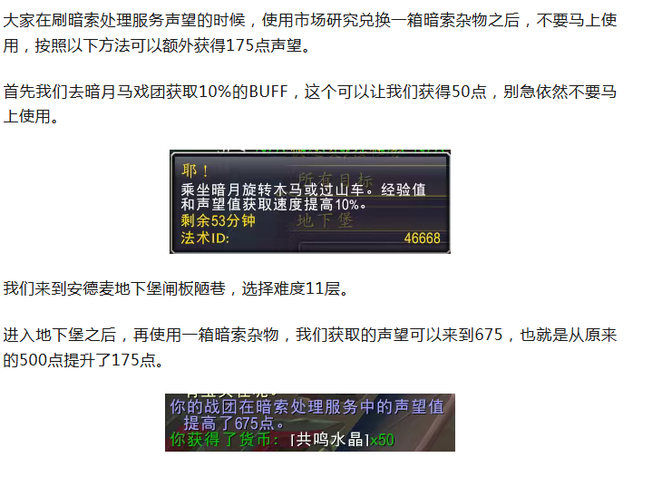 【魔兽世界】正式服暗索声望来这里提升可以额外获得125点