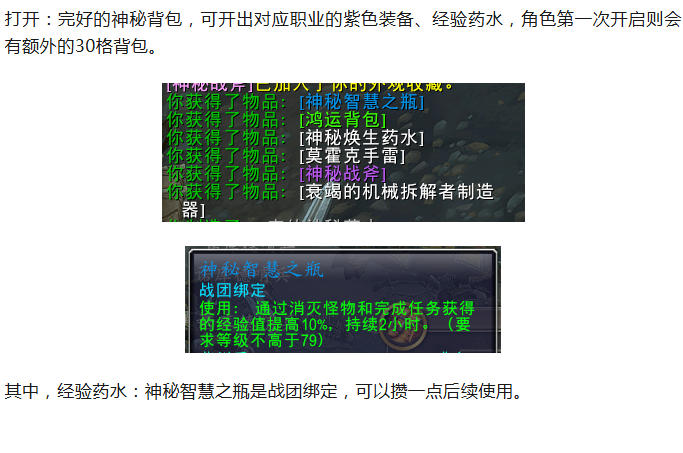 魔兽世界】正式服神秘运势之风神秘背包获得方法