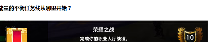 能量的平衡任务线会在你完成成就荣耀之战后,于你的职业大厅中开启。此时,卡雷的影像会向你提供任务深藏的力量,之后一直跟着任务线即可完成能量的平衡任务。