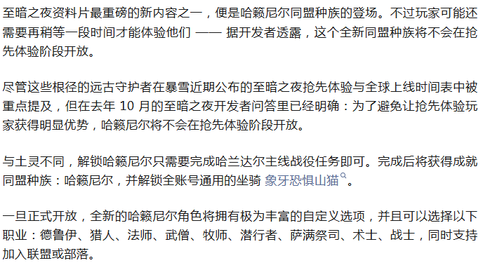 魔兽:新种族哈赖尼尔将不会在抢先体验期间开放!