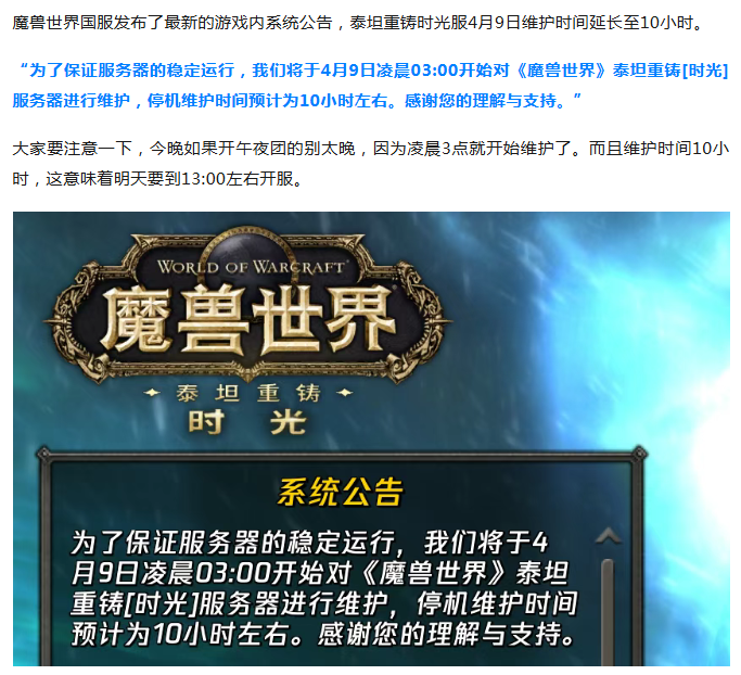 【公告】时光服今晚提前关服!维护时间延长至10小时!