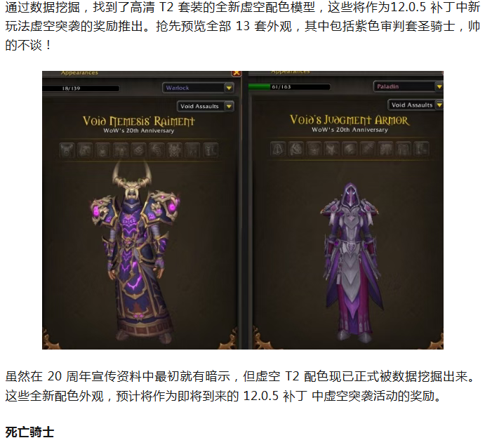 魔兽!重磅消息!全职业虚空T2套要来了,紫色审判套也太帅 了!
