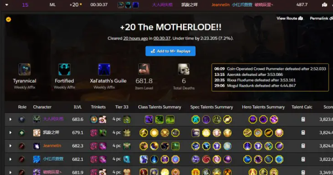 魔兽世界11.15涡轮增压上线后,有1个职业一飞冲天,之前只能打十五六层大秘境,现在居然可以限时完成20层大秘境了,还一不小心打了个世界第一。