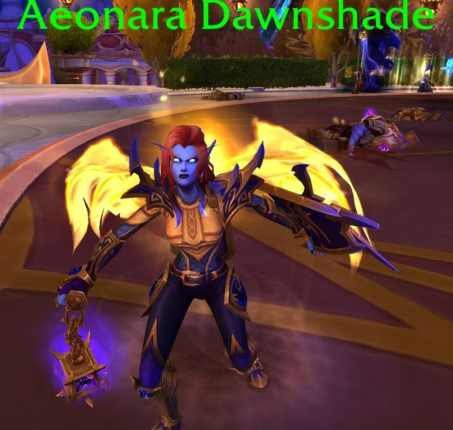 相比前两位在主线剧情中的重要性,艾欧娜拉·晨荫的戏份要少一些。她首次出现在《地心之战》的序章补丁中。在我们短暂造访特洛格鲁斯时,结识了多位新的虚空精灵角色,她拥有日蚀驾驭者的称号,并在暗影卫队袭击特洛格鲁斯时,使用了诸如奉献等圣骑士技能。