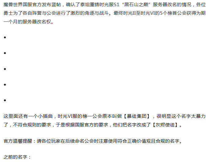 魔兽时光服改名明日生效!一个公会因名字太暴力无法使用