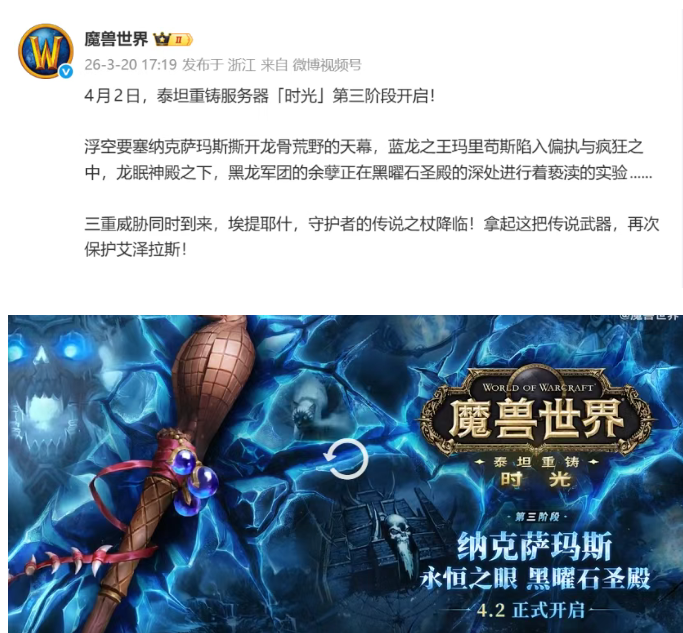 【魔兽世界】官宣!时光服P3阶段开启时间已确定!4月2日起可获取这把传说武器