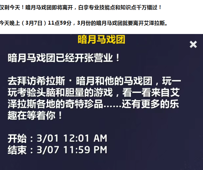 最后一天!3月暗月马戏团将离开,速做专业任务!