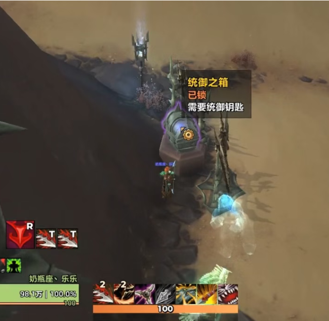 你需要一把统御钥匙,可以在宝箱周围的怪物身上刷出,掉率不高但也不算难。
