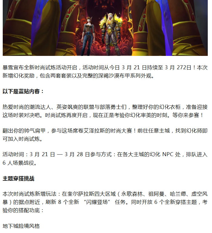 魔兽:时尚试炼今日开启!本次新增两套幻化!活动期间免费幻化!