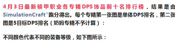 4月3日全职业专精DPS饰品Top10排行榜-锁甲篇