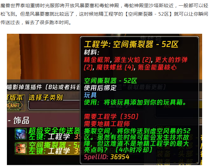 魔兽时光服:P2地精工程学优势,可传送到副本地图