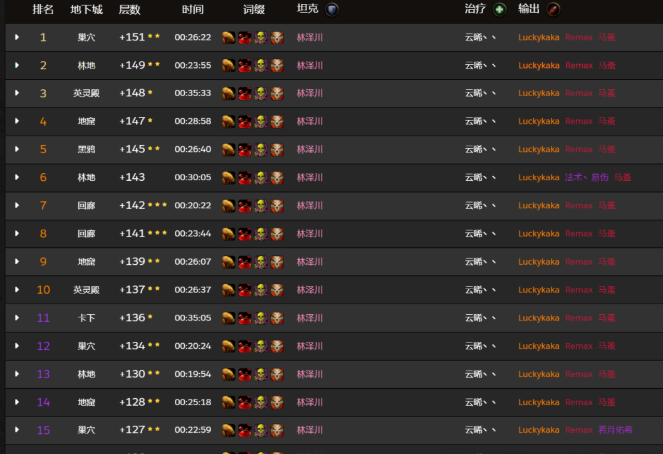 国服队伍已经刷屏军团remix的大秘境排行榜了,而且已经突破了150层大秘境,拿到了+2的好成绩