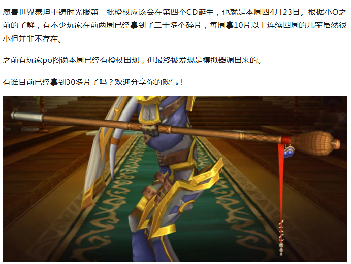 魔兽时光服:国服第一批橙杖将在周四诞生