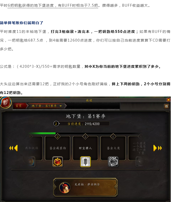 魔兽世界:小号满级后地下堡钥匙别用,等下CD再用!钥匙收益增加、更快解锁神话纹章