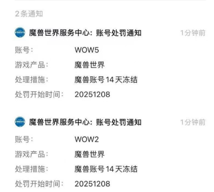 魔兽时光服:玩家五开刷本喜提封号15天