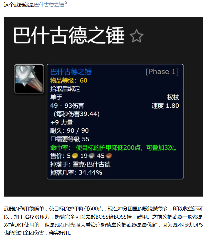 【魔兽世界】时光服最新黑科技!世一奶骑带这个武器给全团增伤2%
