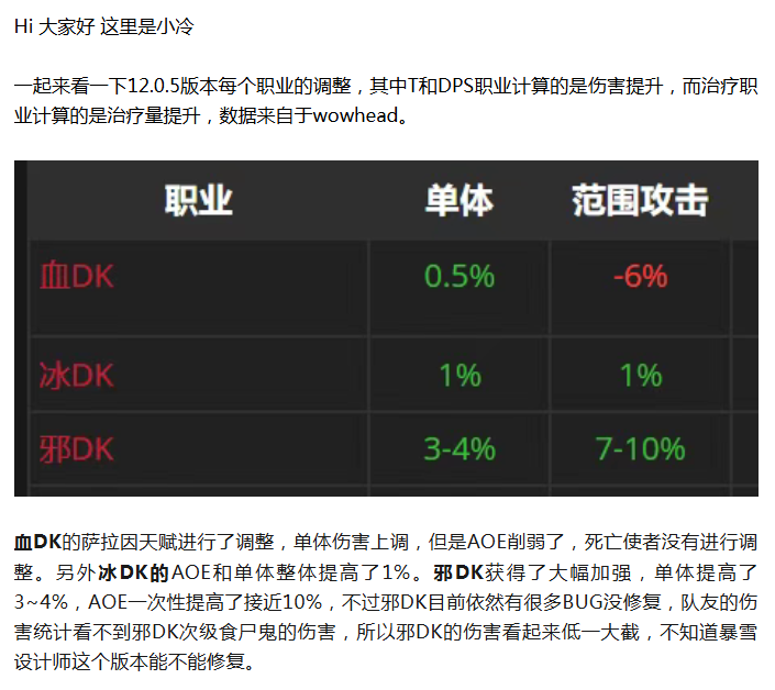 【魔兽世界】12.05 全职业强度变化!邪DK又增强10%,这个S级职业被削弱