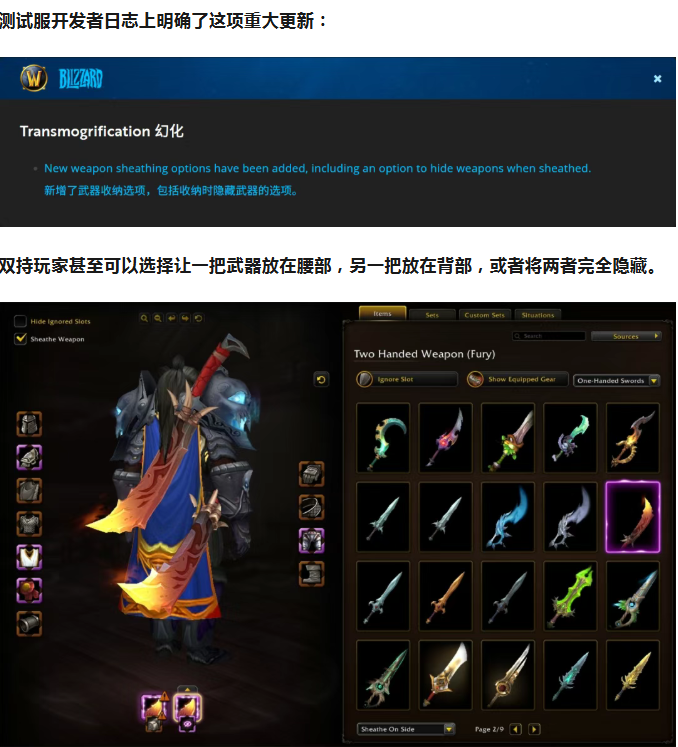 单手剑玩家重大喜讯!12.0.5幻化系统更新,新增武器收纳选项!