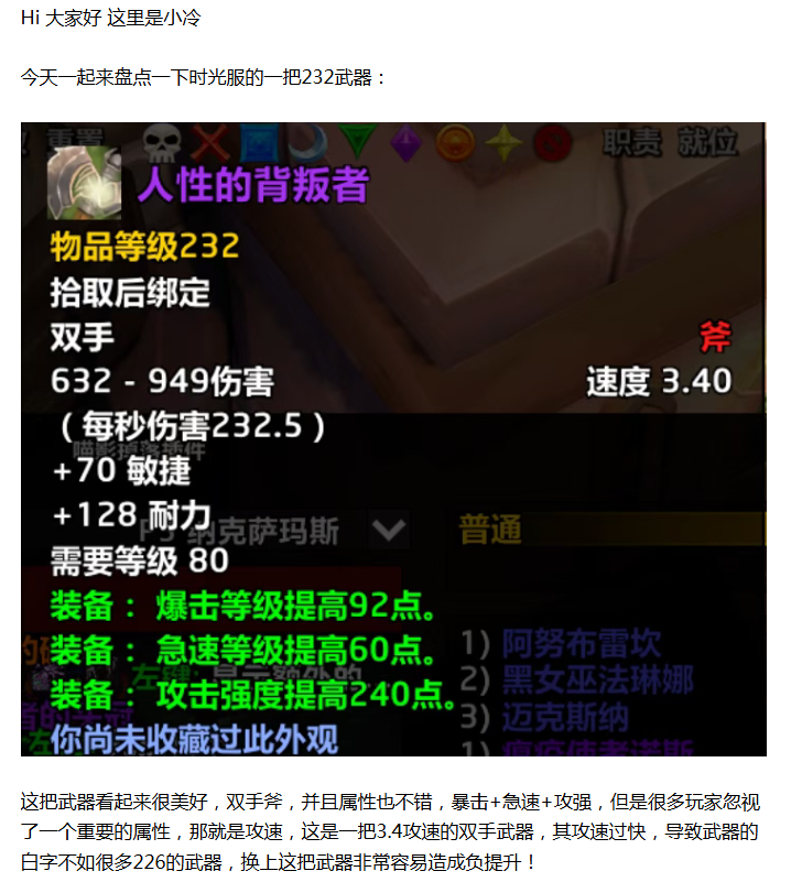 【魔兽世界】时光服P3最陷阱的武器!对多数职业都是负提升,千万别买