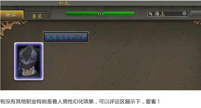 接着胸甲搜索关键字海上或者托林,对应的是托林尼尔护心甲幻化就可以了。